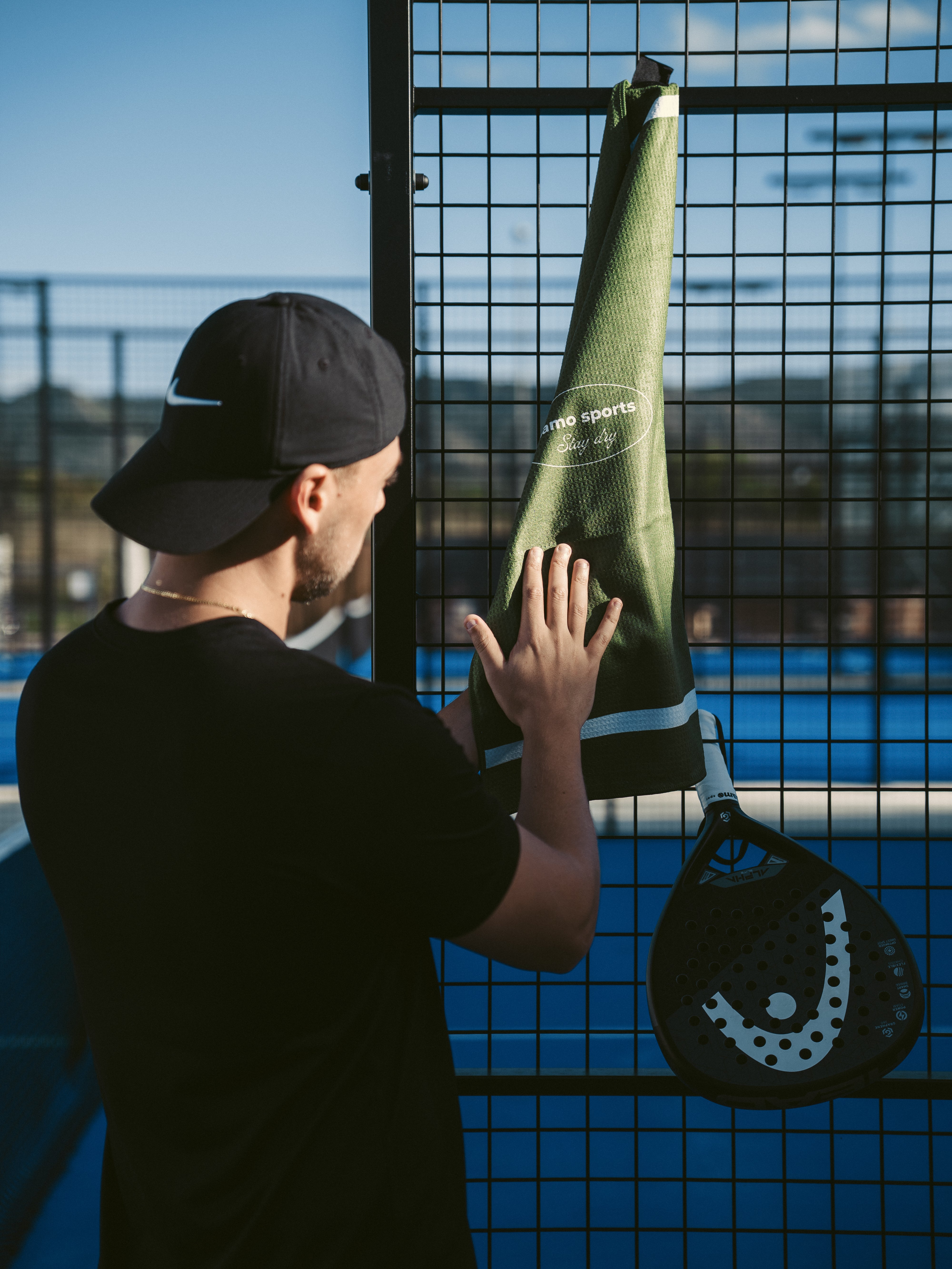 Included in the pack, the Stay Dry towel features an integrated magnet in the corner, allowing you to hang it easily on the court fence or any metal surface. Forget leaving it on the ground or misplacing it—you’ll always have it at hand to keep your hands dry during play.